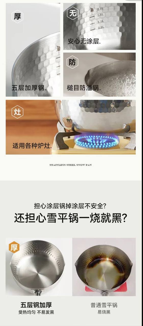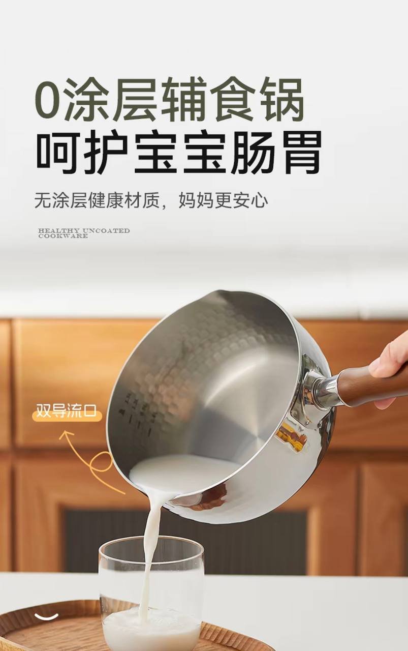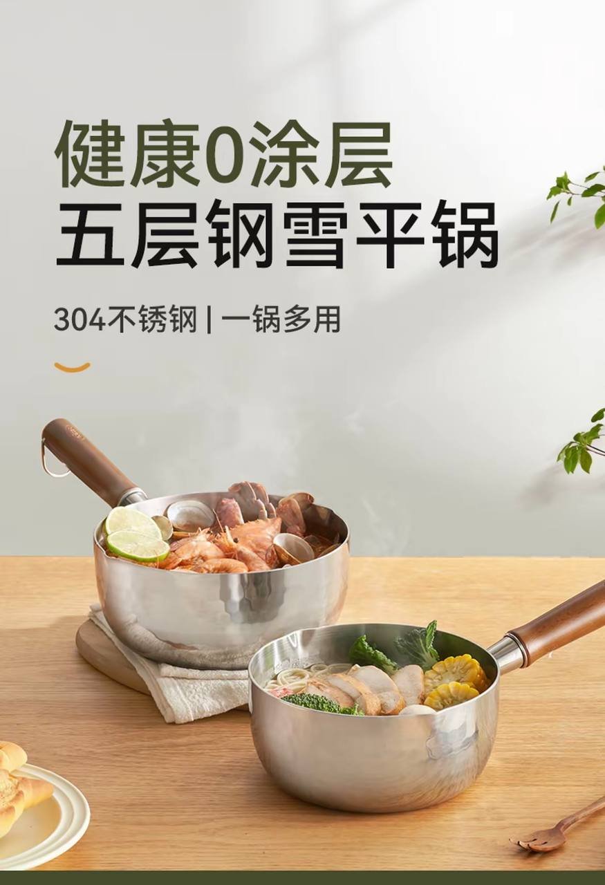Snow flat pot uncoated household small milk pot five-layer auxiliary food instant noodle milk pot