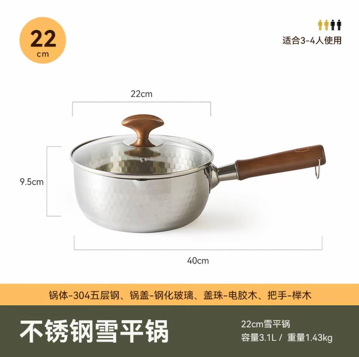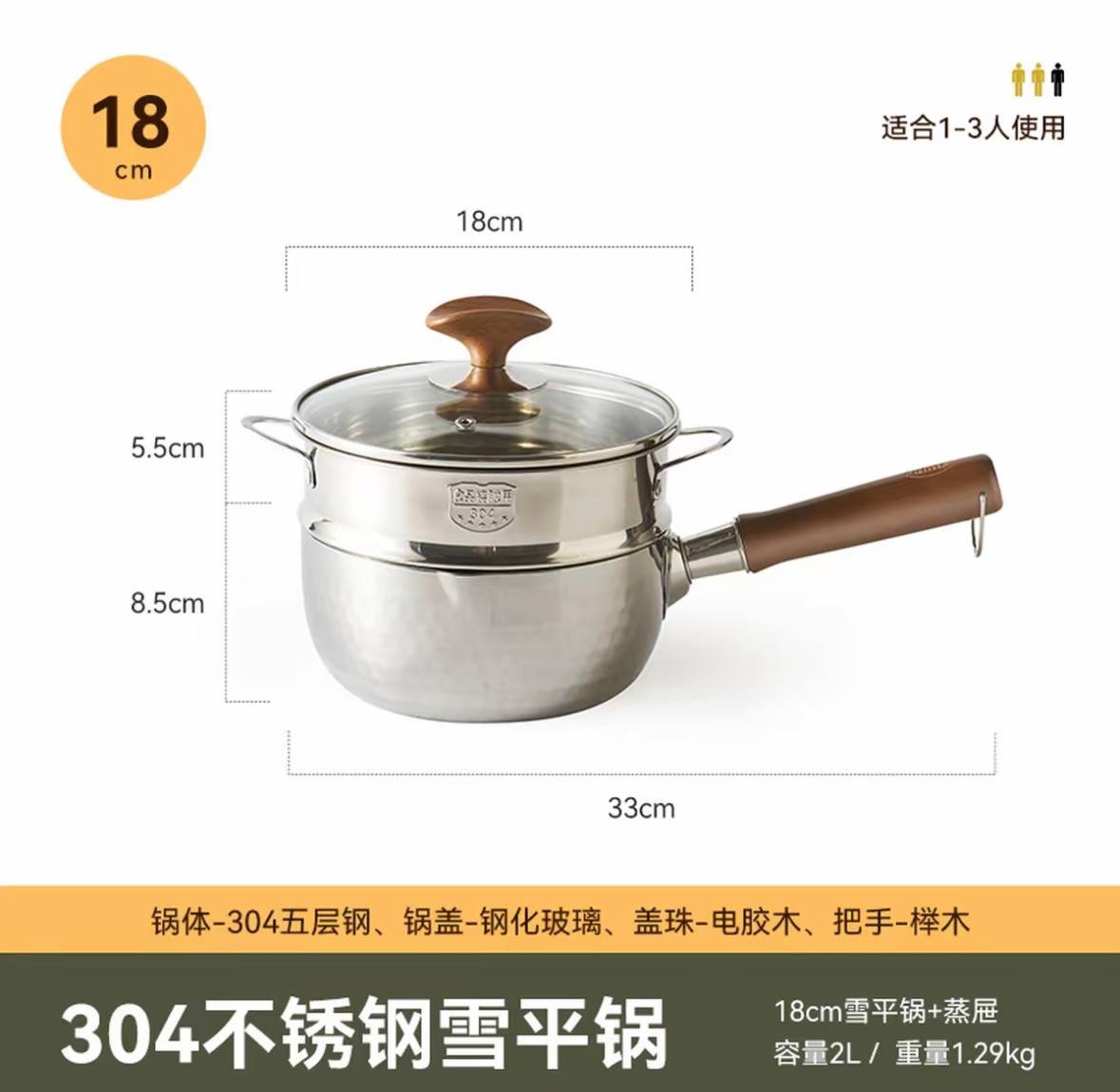 Snow flat pot uncoated household small milk pot five-layer auxiliary food instant noodle milk pot